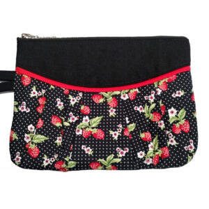 Pochette noire motif fraises et petits pois – Mini sac à main
