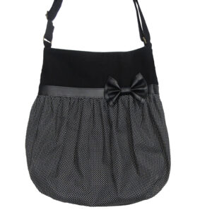 Fourre-tout bandoulière noir noeud en cuirette – Sac petits pois